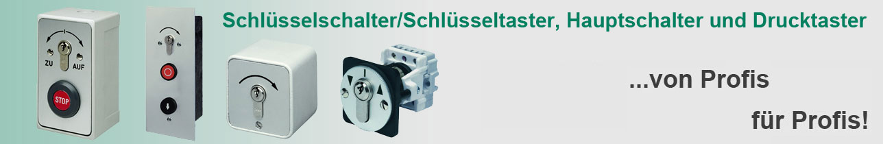 Schlüsseltaster und Schlüsselschalter sind elektrische Schalter die aus Sicherheitsgründen mit einem Schloss kombiniert sind. Der Schaltvorgang kann daher nur von einem befugten Personenkreis unter Zuhilfenahme des passenden Schlüssels ausgeführt werden.