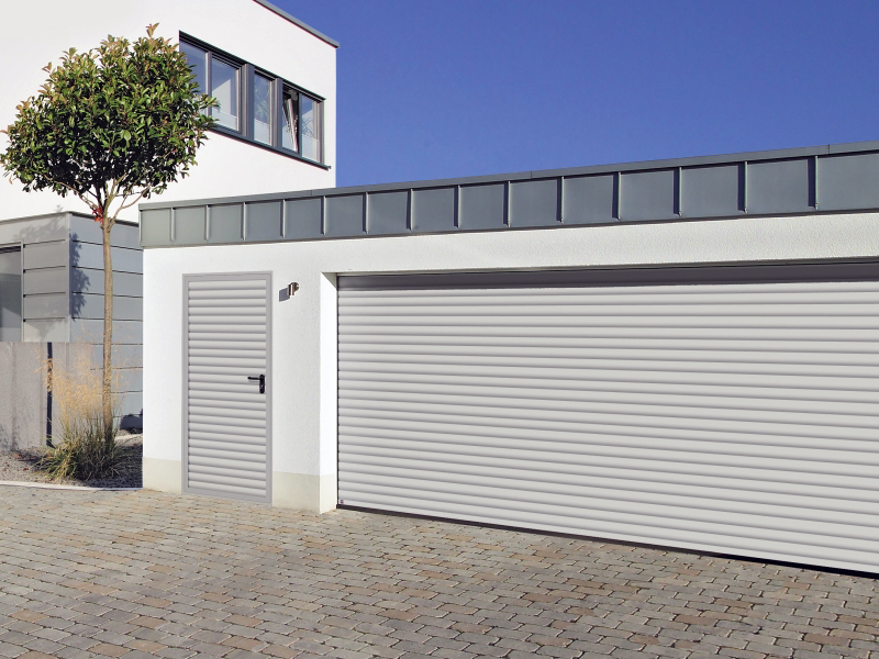 Sichtfenster sind bei den doppelwandigen Profilen möglich. Der Lichteinfall ist jedoch nicht vergleichbar mit einem Sektionaltor. Torbreiten bis zu 12 Meter und ansichtsgleiche Nebentüren (auch wegschwenkbar) sind ebenfalls deutliche Argumente für ein Rolltor.
