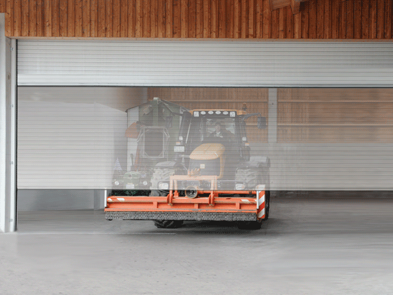 Die Vollausstattung mit Antriebs- und Wellenverkleidung, das Standard-Lichtgitter (Überwachungshöhe 350 mm) und die automatische Notöffnung über Gegengewicht (bei Stromausfall) machen dieses flexible Folientor zum sicheren Innen-Abschluss für Bereiche mit hoher Kundenfrequenz.
